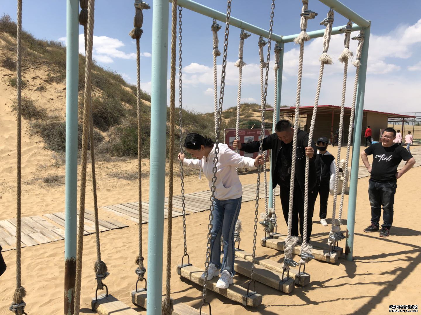 沙漠中有很多游乐项目,比如沙漠冲浪、滑沙、骑骆驼、卡丁车等,"气枪"打靶、观看歌舞表演和50分钟的中蒙合作实景马术表演《永远的成吉思汗》。本次行程最为惊喜的是观看实景马术表演:远处沙山高耸,眼前沙地平坦,一群身着蒙古族各式服装、骑着骏马的英雄从沙山奔驰而下,开启成吉思汗从童年到壮年成长故事的精彩剧目。勇士骑乘奔驰的骏马,捡拾地面物品,下马上马翻滚,站立双马背上……这些惊险刺激的画面赢得阵阵掌声,让人久久不能平静。